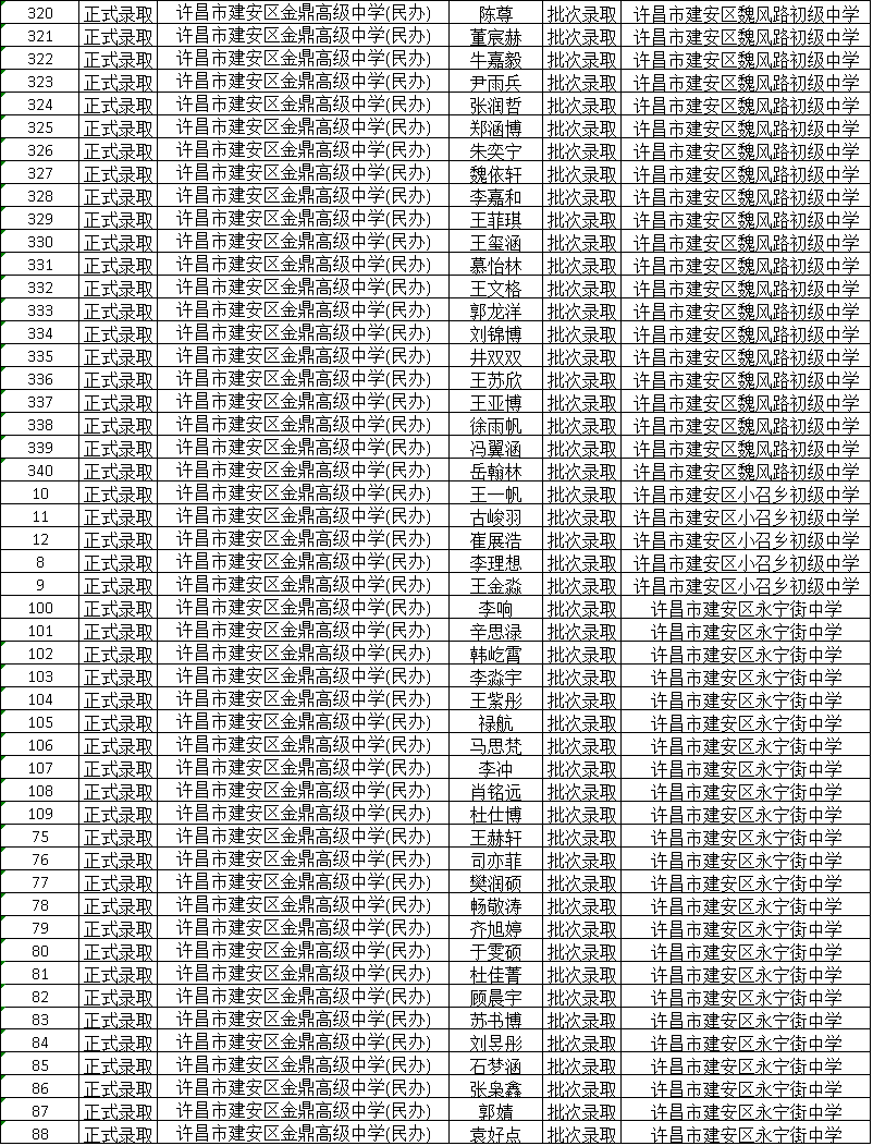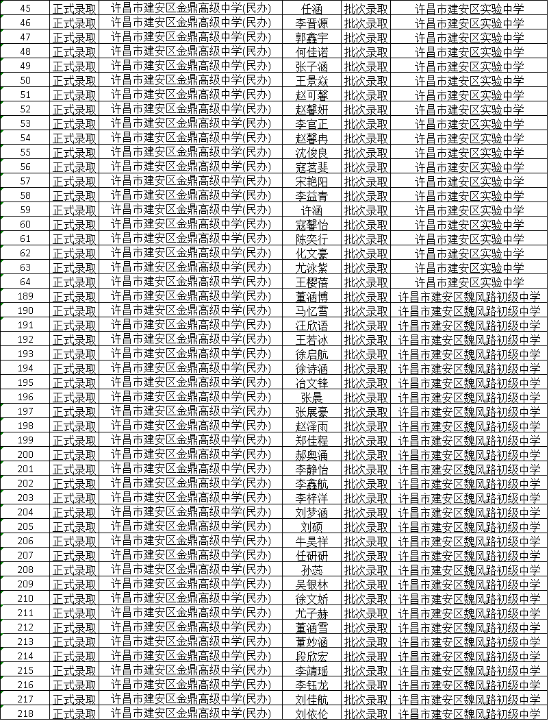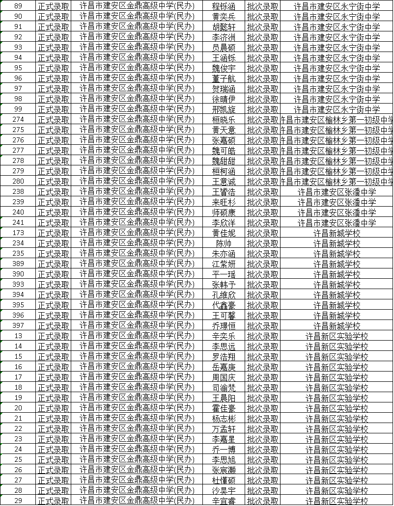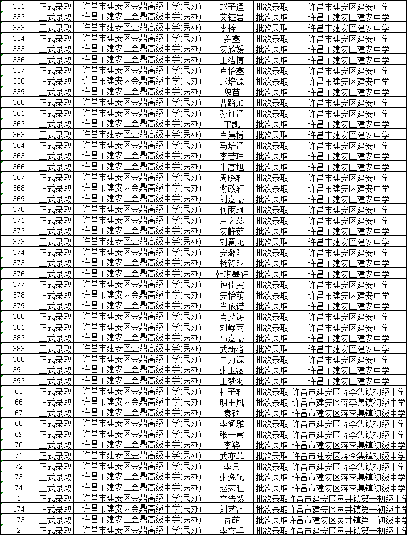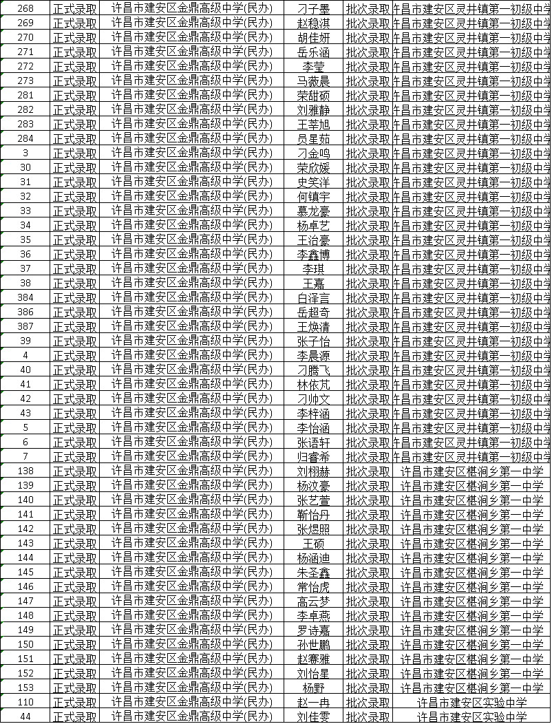 2025年新高一学生录取名单